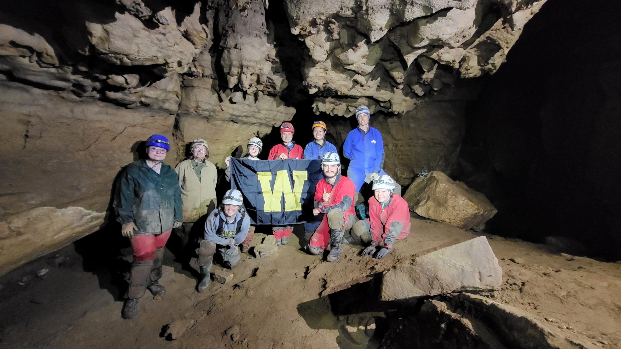 In Fall 2024 Dr. Lyon led a field trip to eastern West Virginia for the Cave Geology class. The class of eight students, with ESCI technician Nick Wiesenberg, explored three different caves and emerged a little bit wetter and muddier each time. The class was focused on the basics of caves and karst: limestone geochemistry, groundwater, karst landforms, and underground hydrology.