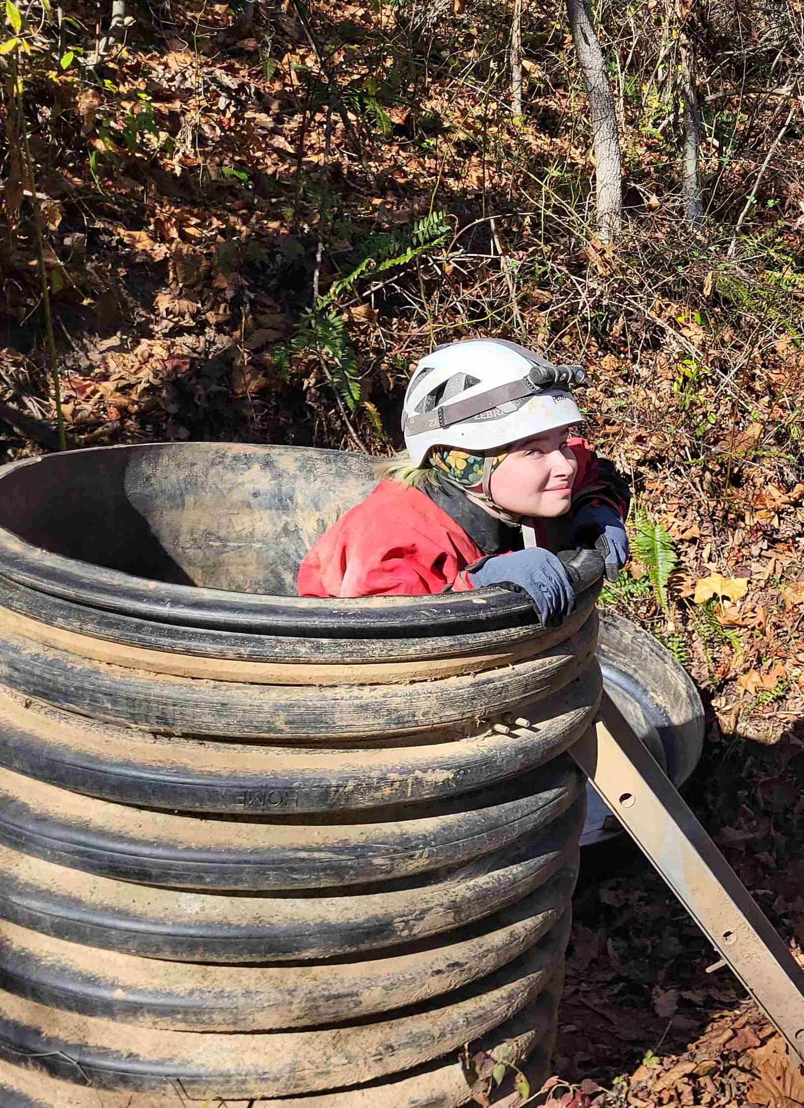 Later that day, we went into Boar Hole cave for several hours, led by Ohio University students Ripley Taylor and Jada Townsend. This cave featured the trickiest entrance – we all had to climb down a metal ladder into the dark, not knowing what was beneath us.