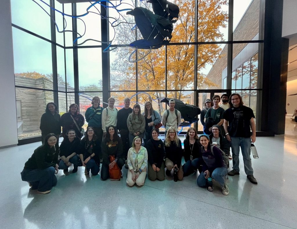 Figure 1. The 2025 Fall Paleoecology class at the Cleveland Museum of Natural History with Ohio’s famous fossil fish, Dunk (Dunkleosteus)!