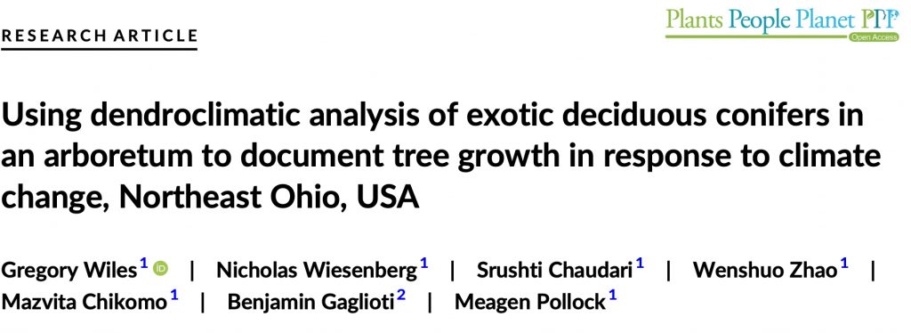 How can we better understand the role of deciduous conifers in the biosphere and their utility in a warmer world. One “natural” experiment is to use dendroclimatology to infer the response of deciduous conifers to a warmer and wetter world. Secrest Arboretum in Wooster, Ohio has two species of larch trees (Siberian and European) as well as bald cypress and dawn redwood trees. These species are all exotic to Ohio and have been growing in the arboretum in some cases for over 100 years. How do they grow in their new homes? This is the subject of a new paper from the Wooster Tree Ring Lab published in Plants People and Planet.