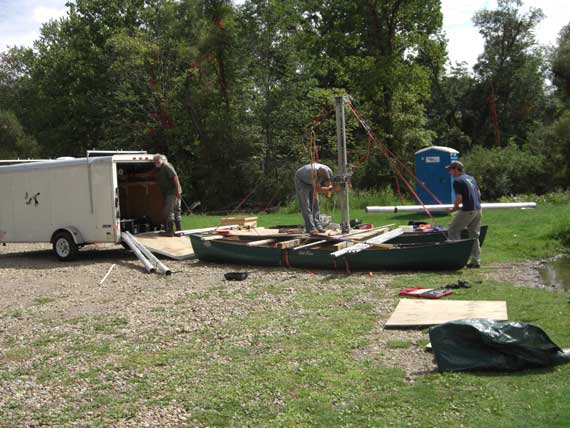 The Cincinnati and Wooster team first assembled the coring platform that would then be launched into 10 meters of water and the over 10-meter core would then be extracted meter-by-meter.